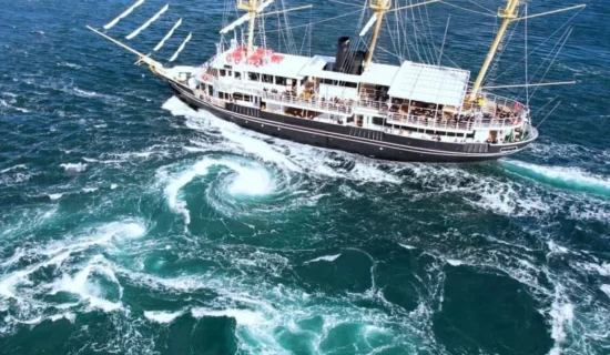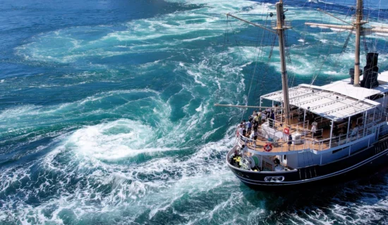 「鳴門の渦潮」は春秋の大潮の頃にはその直径が約20mに達することもあり、世界でも類を見ない大きさと言われています。自然の力がつくりあげる、迫力ある神秘的な光景を往復約1時間の大型帆船での船旅とともにお楽しみください。