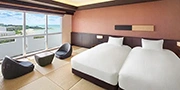 35㎡以上のゆったりとしたゲストルームと、客室から見える美しい海の景色は、四季の移ろい、風の匂い、人生を彩る発見やまだ見ぬ感動と出会う旅をもたらします。太陽の道ができる夕暮れ、極上の眺望をお愉しみください。