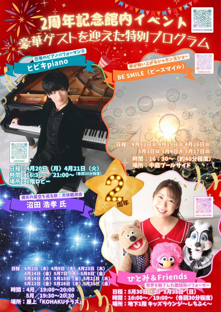 怀着平日里的感谢之情,4月和5月的特别期间,邀请豪华嘉宾的“开业2周年纪念活动”将在馆内举行。