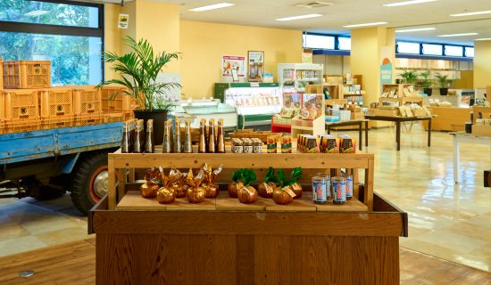 マルシェをイメージした店内には、地元のお菓子や特産品・工芸品の加え、お子様向けのアイテムなどを取り揃えております。