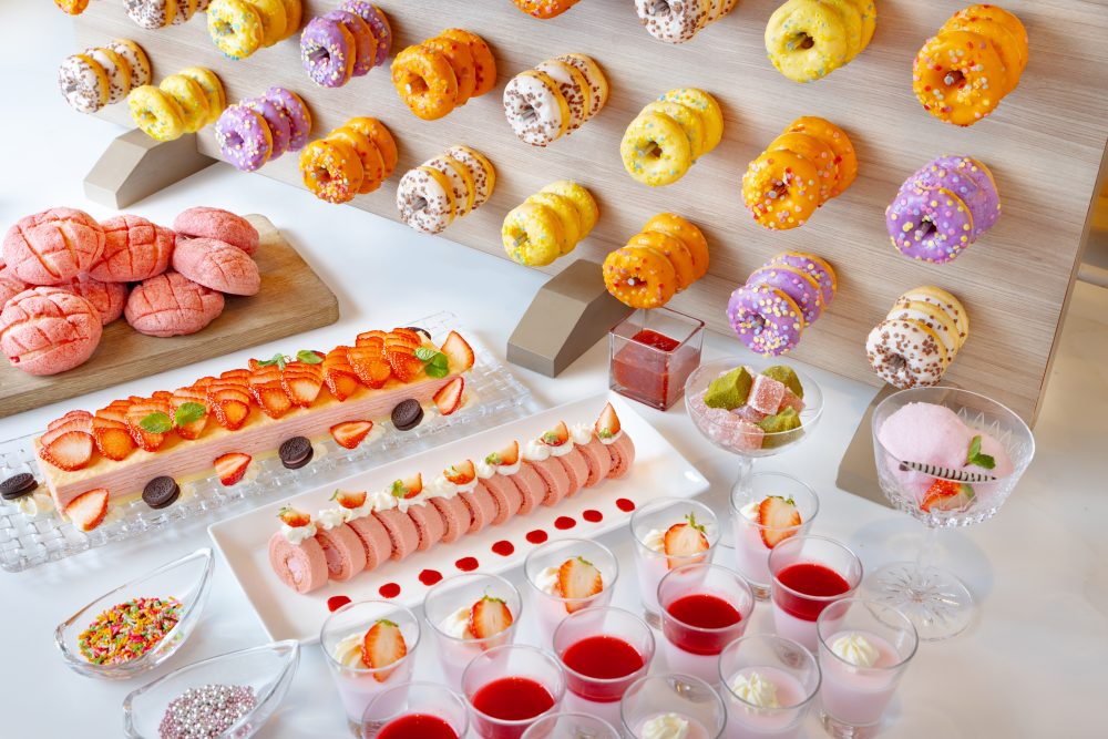 식후의 여운을 깔끔하게 마무리한다면, 시원한 디저트로 매끈한 입맛이 매력의 「딸기 바바로아」, 과실감 넘치는 「딸기 아이스」와 「딸기 샤벳」. 화의 정취를 느끼는 「딸기 와라비 떡」는 푸른 식감과 부드러운 단맛이 인상적이고 딸기의 새로운 즐기는 방법을 제안합니다. 뷔페 보드에는 대인기의 컬러풀 도넛도 늘어서 배는 가득한데, 아직 먹고 싶어져 버리는, 행복한 시간이 계속됩니다.